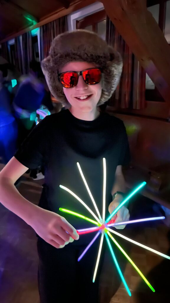 In the evenings, we enjoyed many fun activities, including a games night, different challenges, an outdoor snow bar with a fire pit, a rescue dog demonstration, and a disco. I especially loved the disco because DJ Lucca (3c) really knew what kind of music we liked.