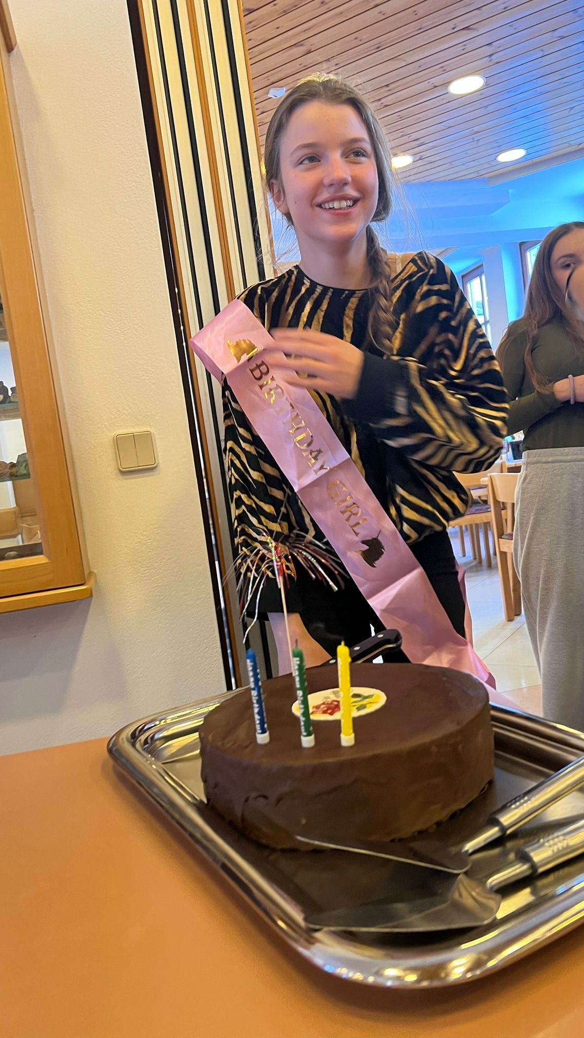 This year, my birthday was during ski week, which made the experience even more special. My friends and teachers surprised me in many wonderful ways. Even the safety instructor from AUVA who visited us wished me a happy birthday! One of the highlights was being allowed to try out an airbag backpack – that was a great and exciting moment.