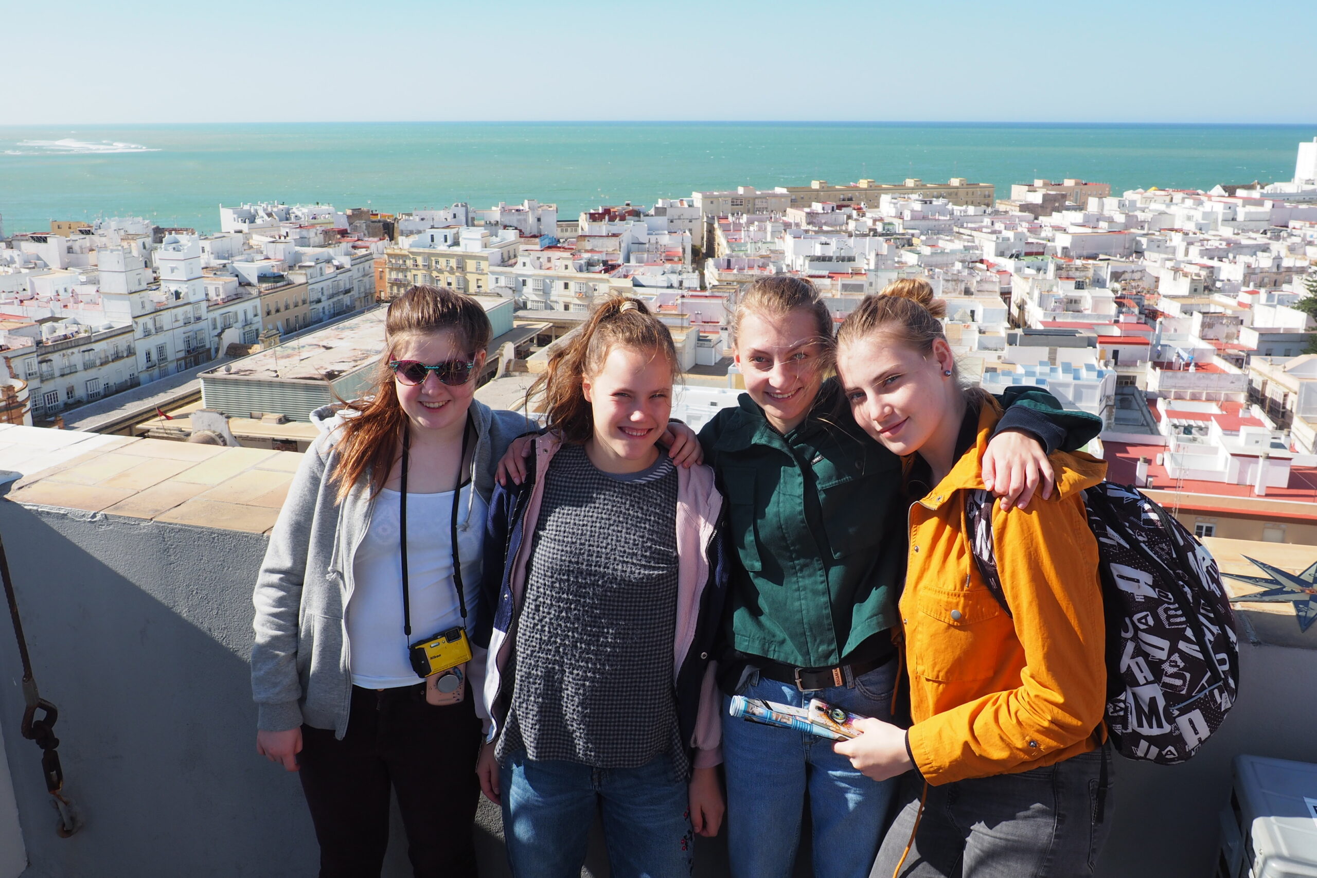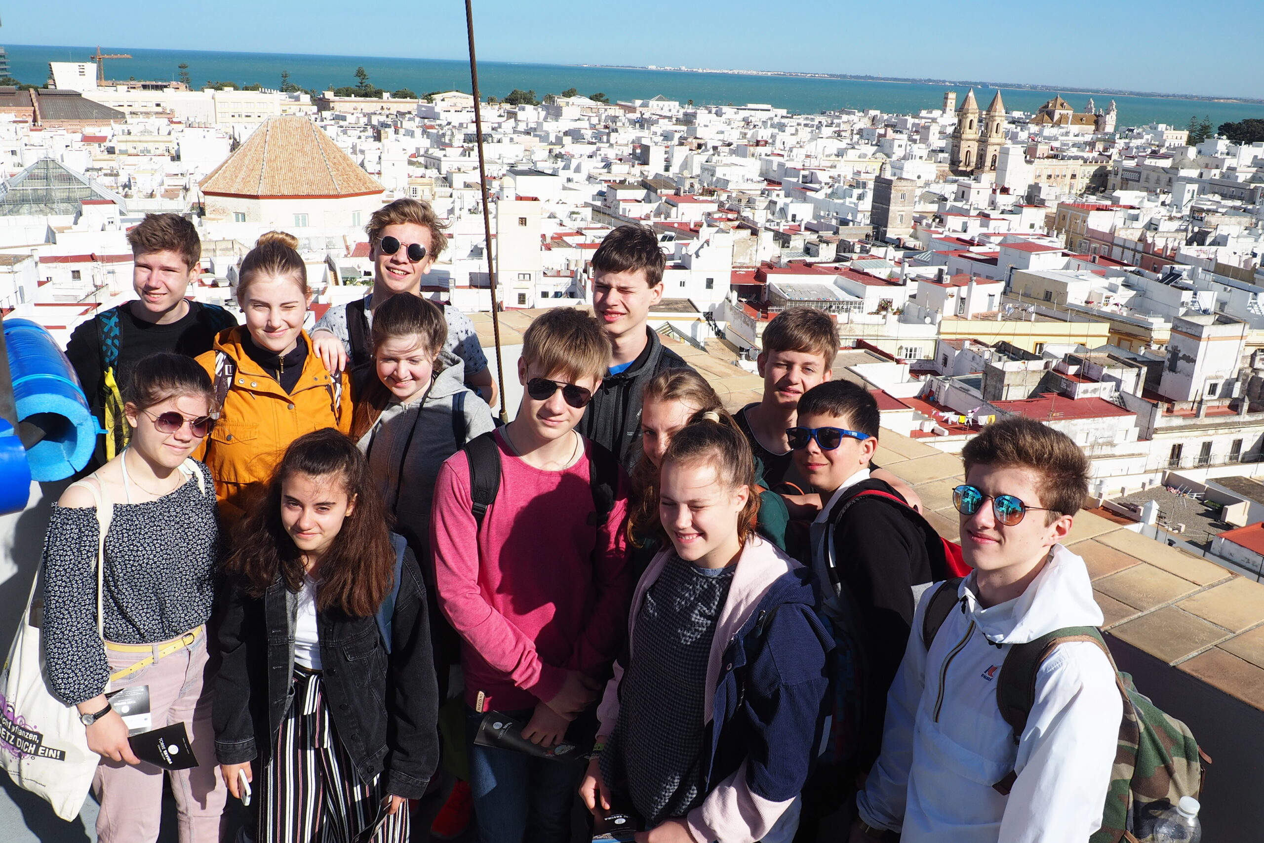 También visitamos Cádiz, donde disfrutamos de sus magníficas vistas desde los tejados de la Torre Tavira. Incluso nos dimos un chapuzón y pudimos comprobar lo fría que está el agua del Atlántico… ¡uff! Además, tuvimos la oportunidad de aprender uno de los bailes más típicos de Andalucía: el flamenco. No solamente nos enseñaron a bailar flamenco, sino que también pudimos movernos al ritmo de la zumba… jajaja ¡vaya risas nos echamos!