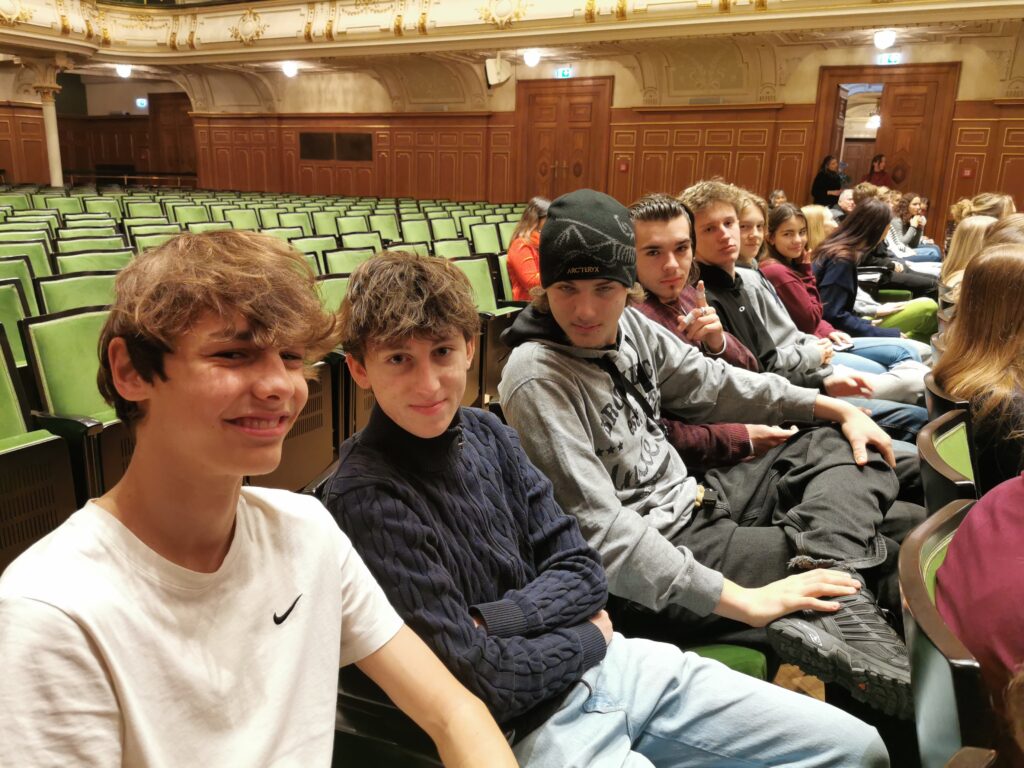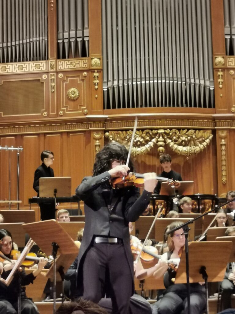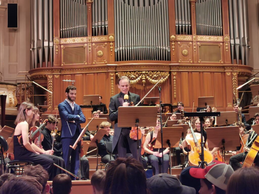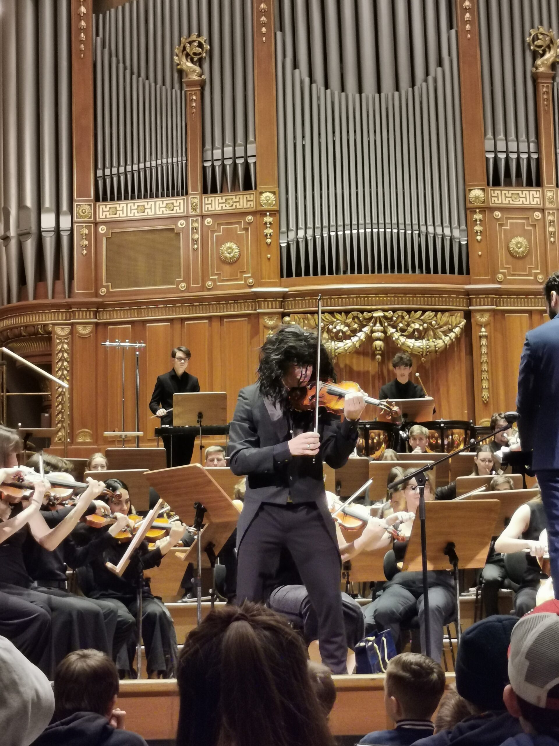 Students in 6b took a special trip to the Stefaniensaal this week to hear virtuoso violinist Benjamin Schmid play Paganini’s 2nd violin concerto, accompanied by the Youth Orchestra Alpe Adria Orchestra under the baton of Emmanuel Tjeknavorian. Mr. Schmid spoke to the students about the life of Paganini and his music, of how he was viewed by his peers oft he time, and the importance of his pieces in the violin reperitoire. Additionally, he prepared the students for each movement of the concerto by talking about its structure, playing the main melodic ideas and explaining the (self composed) cadenza. For added effect, he adorned himself with a black wig at the end of the third movement, La Campanella, in an attempt to create Paganini’s ‚look‘. It was an absolute treat for all students and teachers alike! The Orchestra also performed Johann Strauss (son) Wein, Weib und Gesang op 333.