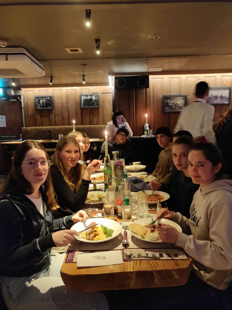 In Dublin, we stayed with host families, attended Sandymount ETSS by the seaside, and participated in various cultural activities. We visited the EPIC museum, a really interesting interactive museum that showcases the history and culture of Ireland. We also attended an Irish Music & Dance show, which gave us a taste of traditional Irish music, songs and dance. Our walking tour of Dublin was also a great way to learn about the city’s history and culture. At the school, the students had the opportunity to participate in a traditional Irish Céilí dance and Gaelic football. These activities not only allowed them to learn more about Irish culture but also get to know each other and their new friends at Sandymount ETSS better! Everyone was delighted to get to know another country and to make new friends in Ireland!