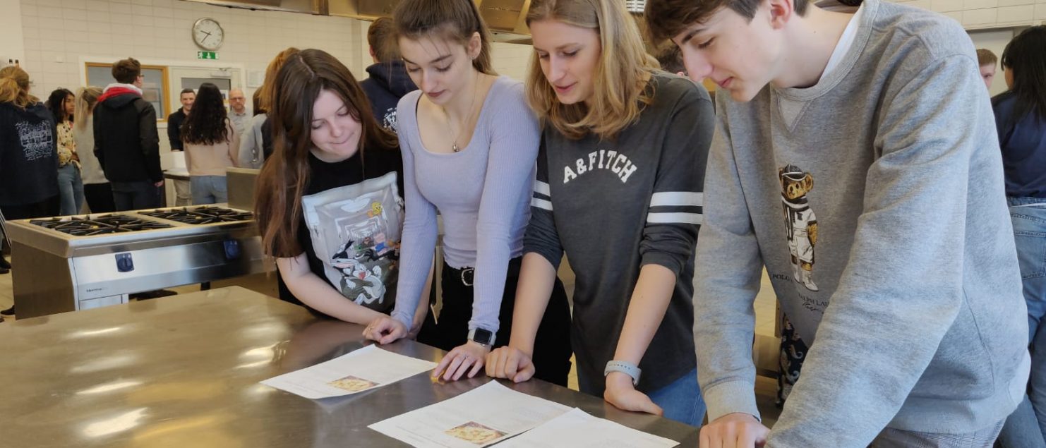 The week before the Easter break, we, Valerie, Lilith, Teo, Paul and Max (6c) got to visit Aalborg, a city in northern Denmark in the course of an Erasmus+ project. The topic for all students, German, Danish, Spanish, French and Austrian was “trendy food” which did not seem very interesting to us at first, but we were proven fairly wrong. Apart from working in groups we participated in all kinds of fun and instructive activities. Sustainability, fish, nutrition and Danish culture were only some of the aspects of our trip. We could even prove ourselves as real chefs in a professional kitchen where we learned to cook new, healthy meals with sustainable ingredients that ended up being delicious. Mussels, vegetarian lasagna or ice cream with crispy worms were only some of them. Early in the morning we witnessed a fish auction at the North Sea where Danes spend hundreds of Euros on fresh fish.