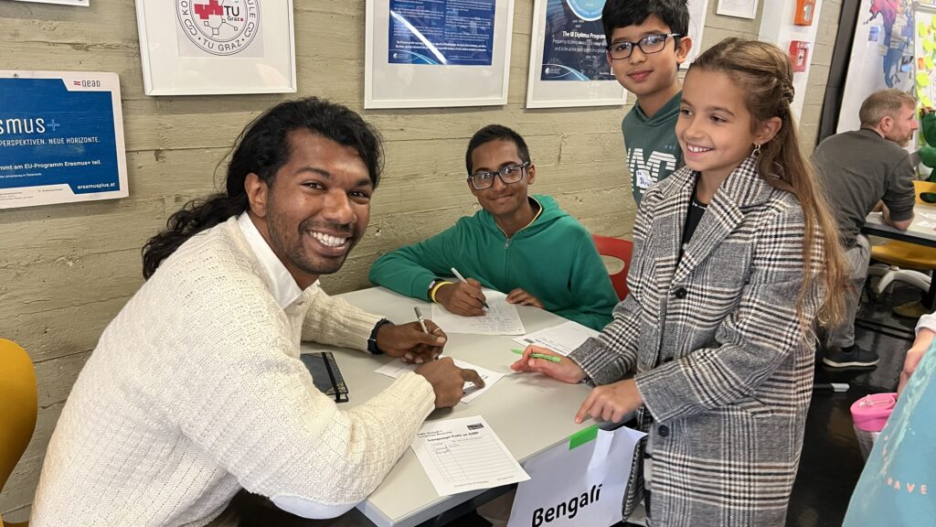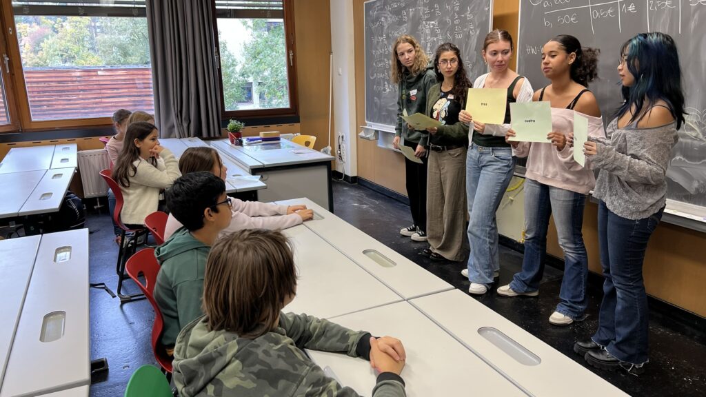 On October 16th, three weeks after the official European Day of Languages, GIBS celebrated this day of language diversity with two main events. The Year 1 classes had group workshops with Year 8 students who taught them English with various activities and games. At the same time the Year 2 classes had workshops with Year 7 students in the four other languages taught at GIBS: French, Latin, Russian and Spanish. In addition to that, the Language Café took place in the long break. This is an opportunity for all students to share some words and phrases from their mother tongues with the rest of the GIBS community. It was brilliant to hear so many different languages being spoken in our school!