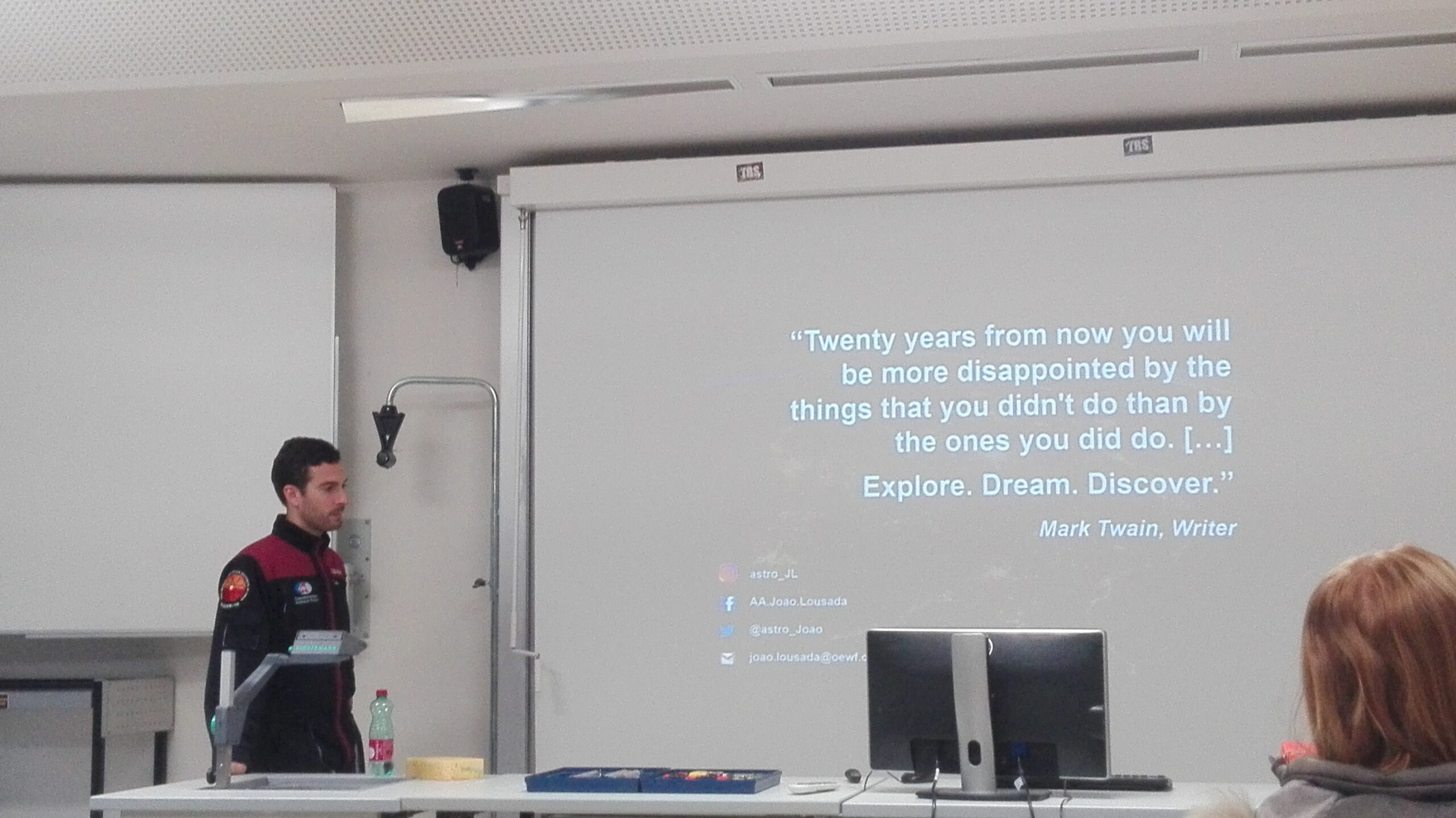 Mr. João Lousada explained why the job of an analog astronaut is important: they are trained to conduct spaceflight-simulations in Mars/Moon-like regions on Earth, testing and evaluating equipment procedures, human factors and workflows relevant to future human-robotic space exploration missions.