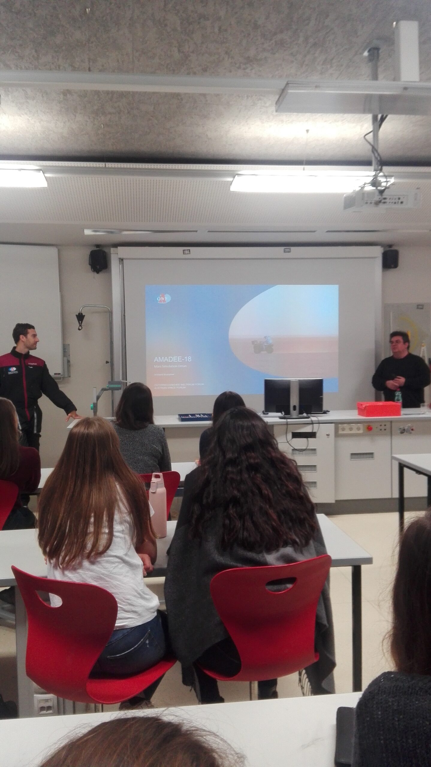 Mr Willibald Stumptner presented the AMADEE-18 simulation mission: directed by a Mission Support Center in Austria, a small field crew conducted experiments preparing for future human Mars missions in the fields of engineering, planetary surface operations, astrobiology, geophysics/geology, life sciences and other.