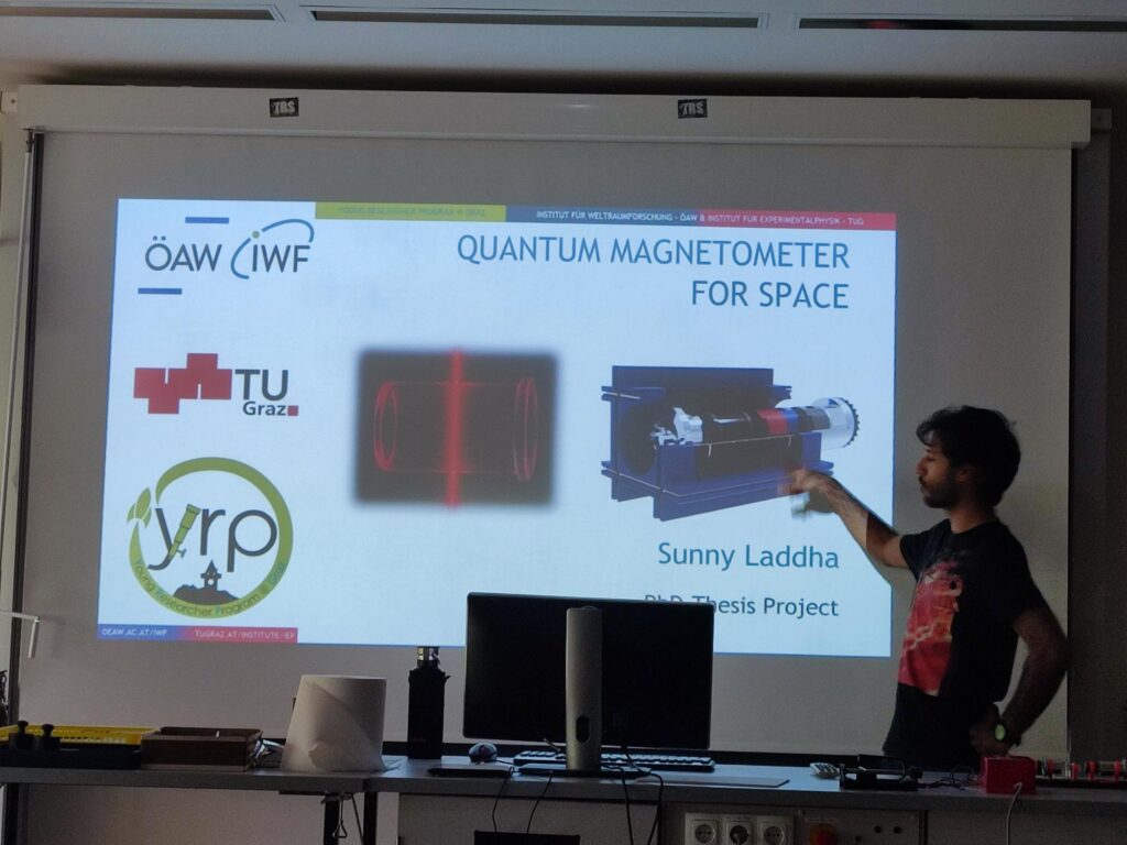 Dipl.- Ing. B.Sc. Sunny Laddha (Gibs Alumni, TU Graz) presented his PhD research project, that involves data collected from ESA’s Jupiter Icy Moons Explorer, Juice. The research project is using quantum interference to measure magnetic fields.