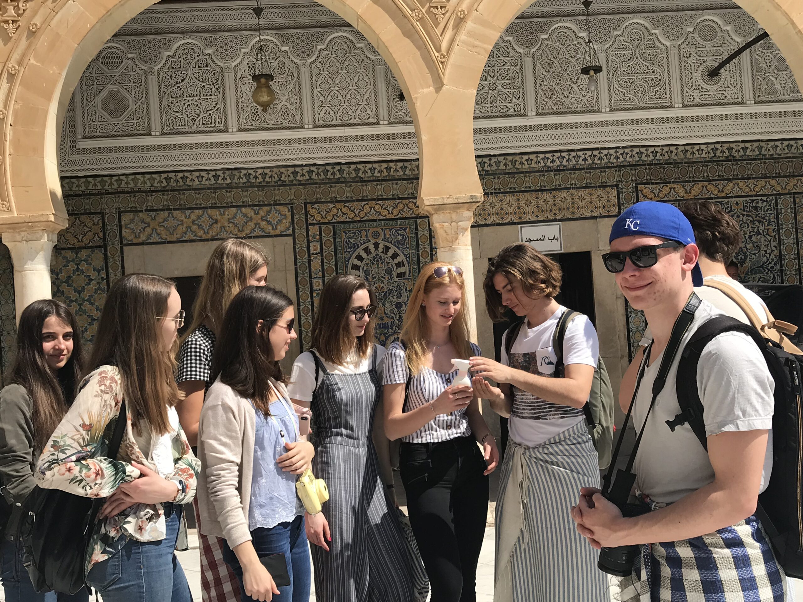 les parfums et les odeurs, La Zitouna, Sidi Bou Said, Café de délices, Patrick Bruel, fleur d’oranger, Mousharabeh, , Le lycée Idéal, Mourad et Karim, Medina, Roses, Epices, Harissa, L’artisanat, balade sur le dos de chameau, les garçons ont peur du MMA, Zumba, Bardo, Virgile, les muses et Neptune, Haute Patisserie de Fréderic Cassel au Lac 2, coupe à la Mr. Trofaier, Restaurant Olivier, Couscous, Mme Radl – l’ennemie de la paille, beaucoup de rires, un groupe enthousiaste et motivé, Yalla emchi Tunis Air !