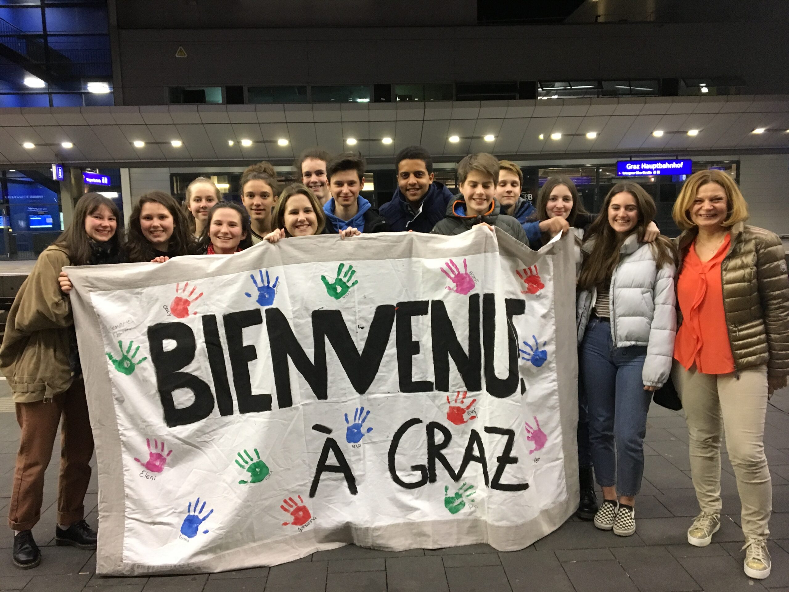 Une fois de plus et depuis 19 ans, cette rencontre entre les élèves de GIBS et ceux du lycée Descartes à Rennes s´est déroulée dans la bonne humeur et le partage. Au programme du séjour des élèves français du 29 mars au 4 avril: des cours dans la matinée, des visites de musées, la découverte de la ville de Graz sous forme d´un rallye, une randonnée commune sur le Schöckl et … une soirée commune où la musique et la bonne nourriture autrichienne étaient au rendez-vous. « I´m from Austria », la chanson de Reinhard Fendrich, interprétée par les élèves des 5abc a bien-sûr enthousiasmé les corres français.