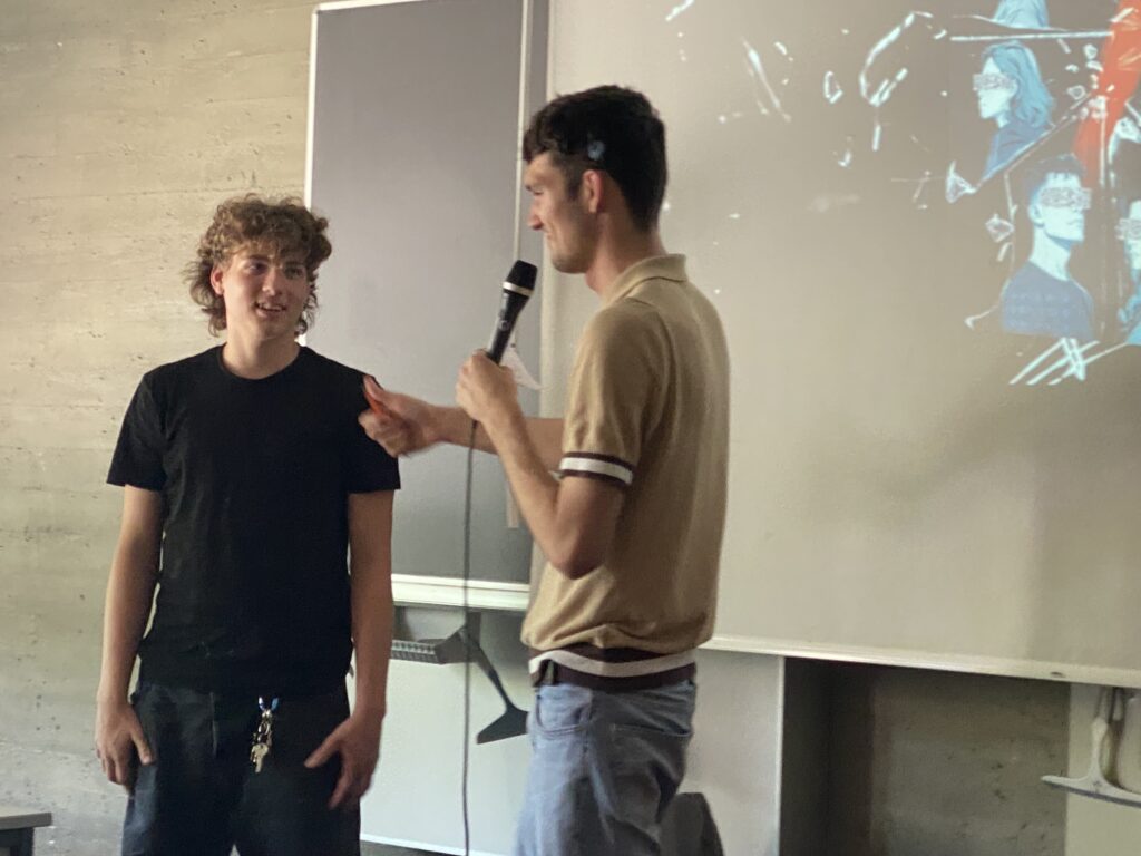 Lesekabarett nennt er selbst seine Performance und verspricht damit nicht zu viel. Eine kurzweilige Mischung aus G’schichterln aus seinem Leben, wahr oder erfunden – who knows, gespickt mit einer Portion Sarkasmus, (Selbst-) Ironie und passgenauer Jugendsprache zieht die Schüler:innen der 5., 6. und 7. Klassen in ihren Bann. Der Bühnen-Erfahrene erzählt launig von seinen Reisen, den Nöten bei der Cover-Gestaltung und den Fallstricken der KI. Die zu ihrem Glück gezwungenen Schüler:innen haben sich köstlich unterhalten und waren erstaunt, wie unterhaltsam eine vermeintlich fade Lesung sein kann. Durchwegs lachende Jugendliche, zum Teil mit dem gekauften und signierten, neuesten Roman unterm Arm, verlassen die Lesung. Danke an die Buchhandlung Moser-Morawa, die diese Veranstaltung gesponsert hat.