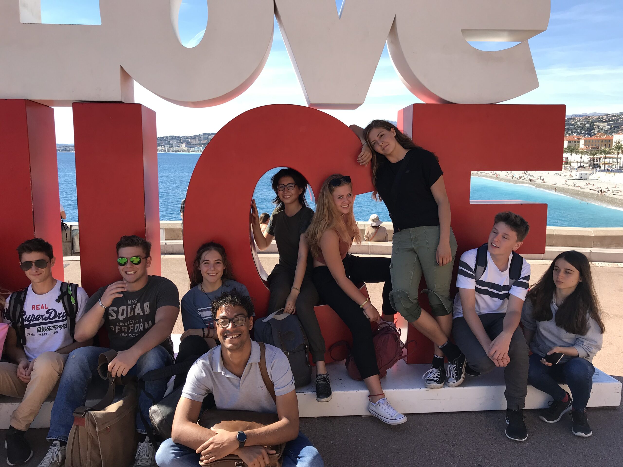 Cours de langues, musées, mer , soleil, famille d’accueil, vieille ville, Cours Salaya et le marché aux fleurs, Fragonard, de la lavande, Cannes, Palais du Festival, Palme d’or, Ile Sainte Margherite, Socca, Sheherazade, Yves Klein IKB et Nikki de Sainte Phalle, Menton et „Canaris“, plages et vagues, Saint Paul de Vence en bus Azur, Fondation Maeght, Monaco, Jean Cocteau, Matisse et Marc Chagall, „La vie“ Cécile, Guillaume et Mme Radl – NICE, on t’ aime!