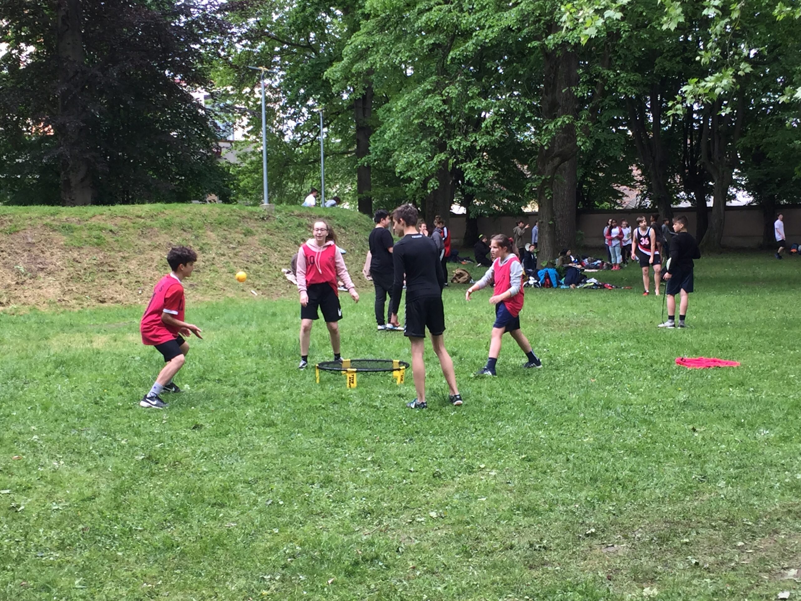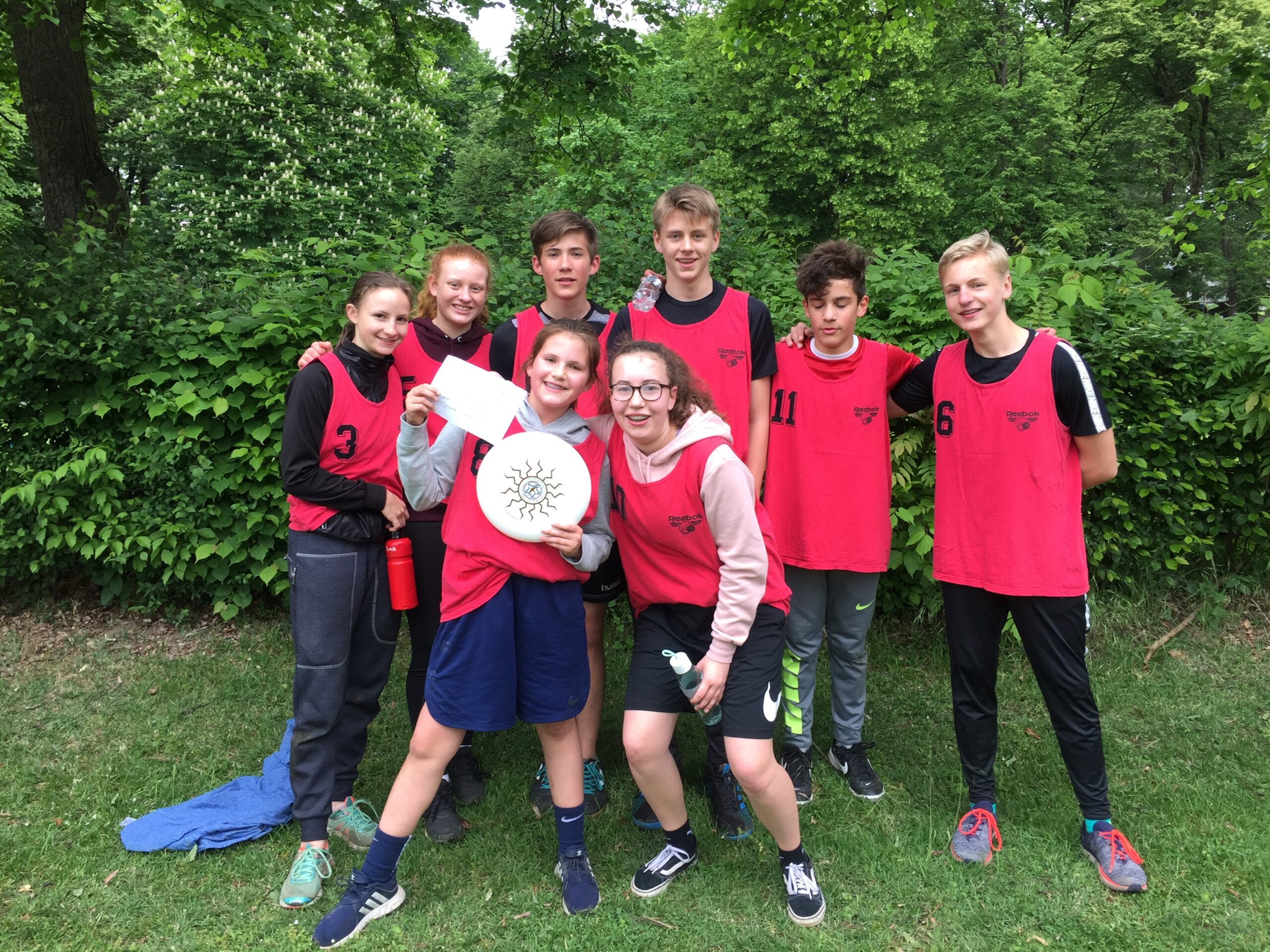 4 lower school-teams (from 4abc) and 3 upper school-teams (5b, 6abc, 7abi) chased the discs enthusiastically and achieved good results.