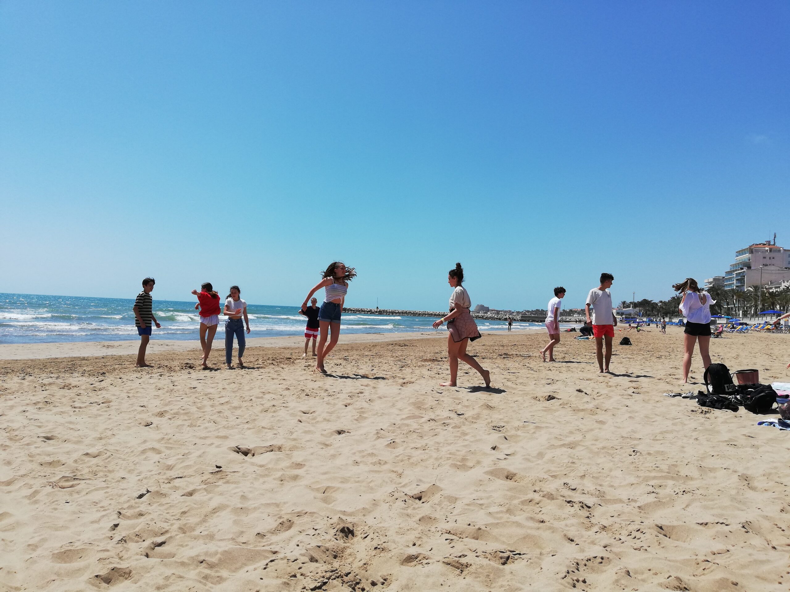 Nos divertimos mucho en Sitges jugando al voleibol en la playa.