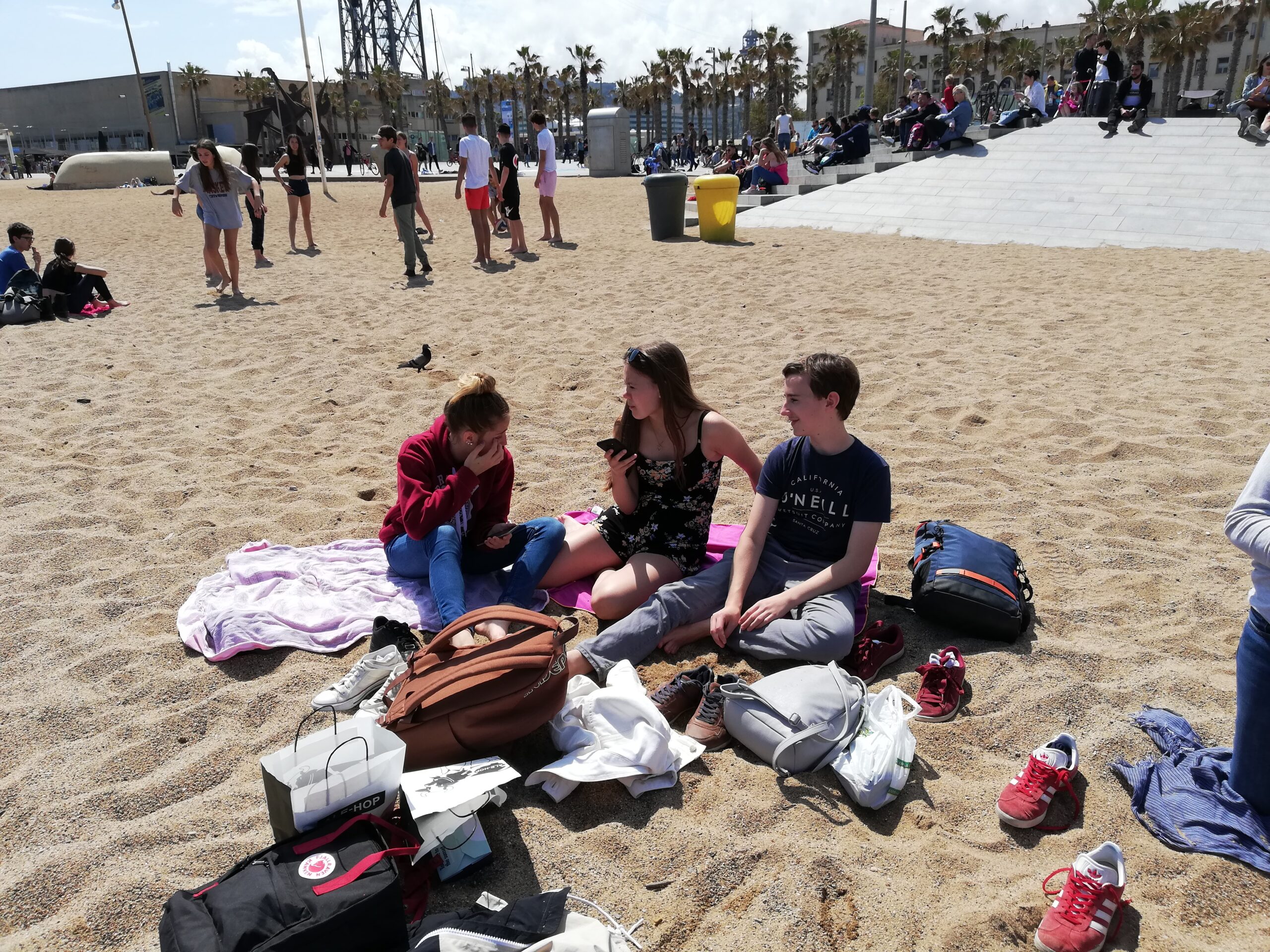 El barrio de la Barceloneta es muy auténtico y la playa estaba a tope.
