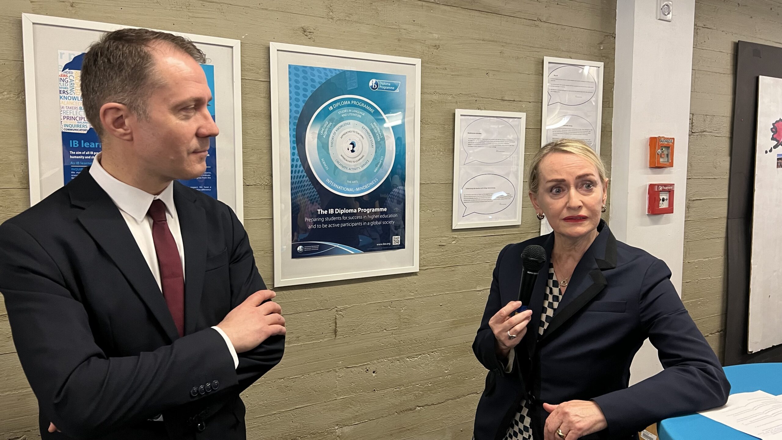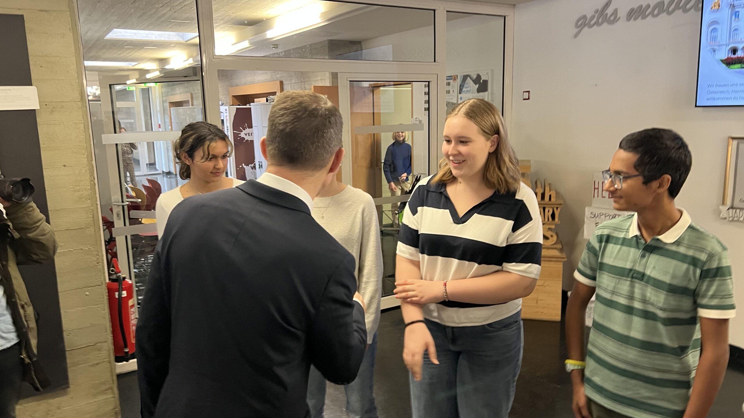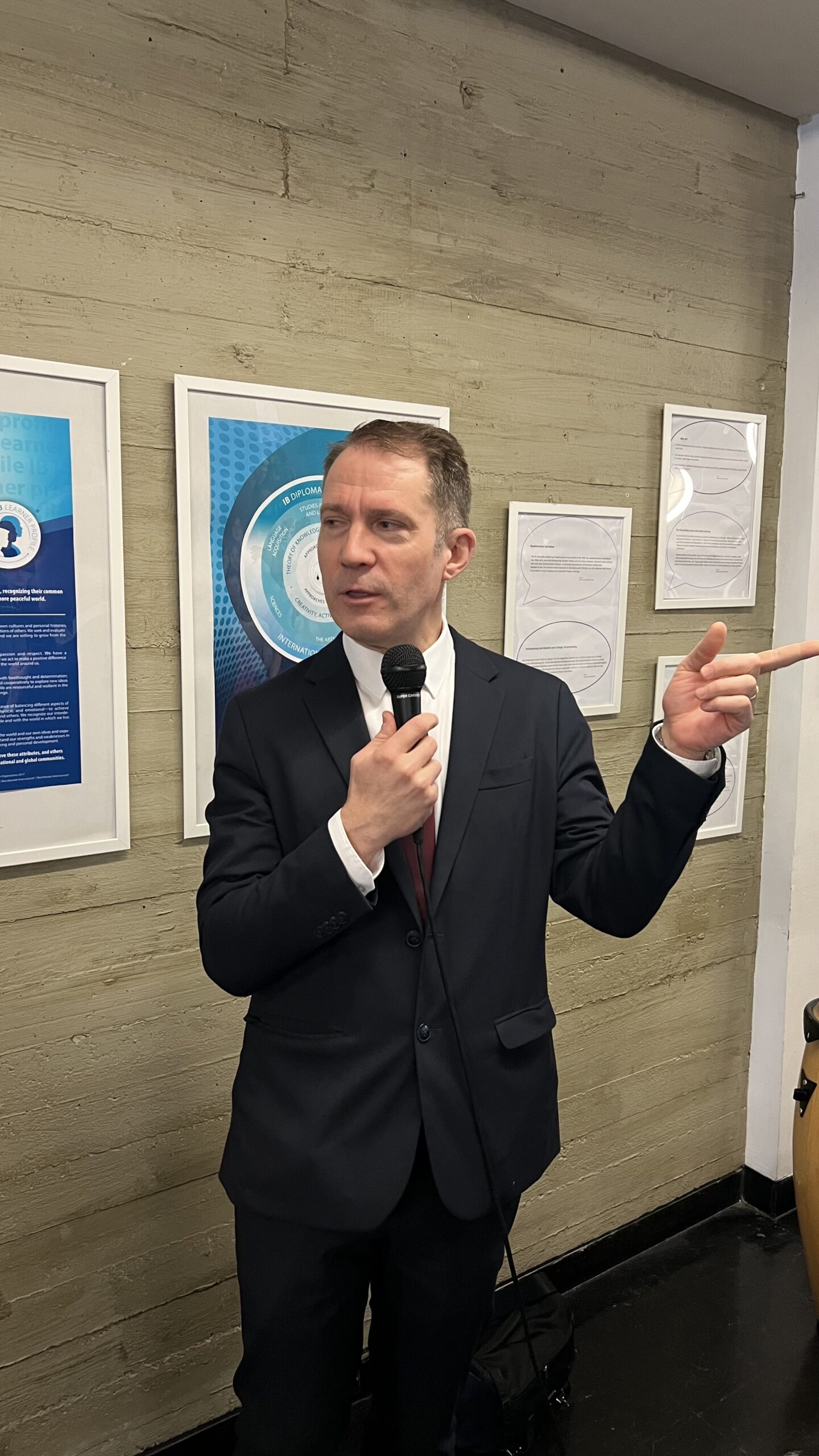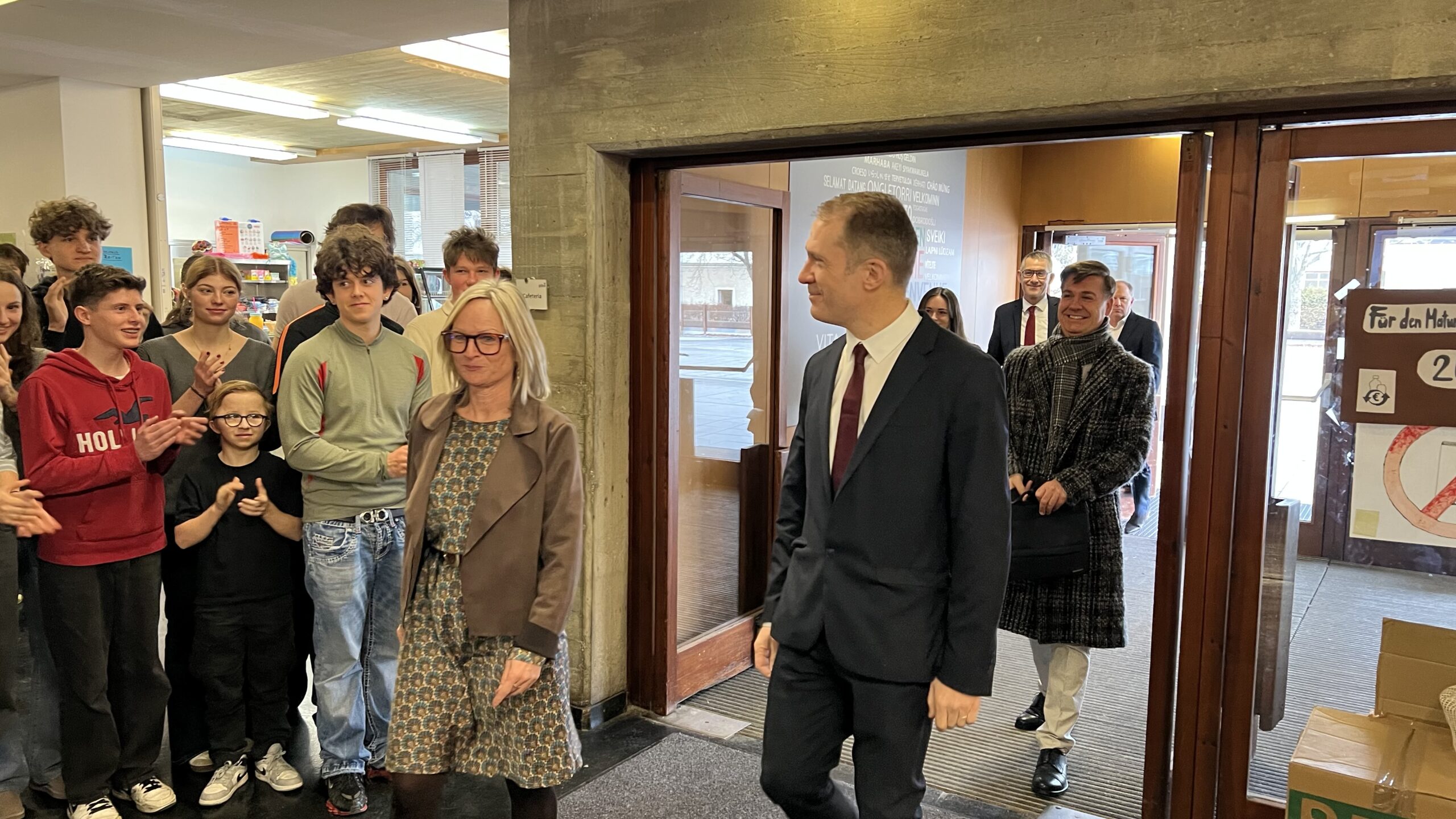 French students in years three and five, along with the junior choir and class 3C, performed the popular song “On Écrit Sur Les Murs” by Kids United for the French ambassador, Monsieur Peyraud, when he visited the school this past February. Later, during the welcome, Noah Schulte 4c performed the French composer Camille Saint-Saëns’s “Allegro Appassionato, Op. 43” on the cello, accompanied by the professional pianist Sakie Harada. After that, students Tilo Bendkis (3B), Olivia Platzgummer (3C), and Flora Karaka sang the classic “Les Feuilles Mortes,” accompanied by Lily Fink (7B) on clarinet.