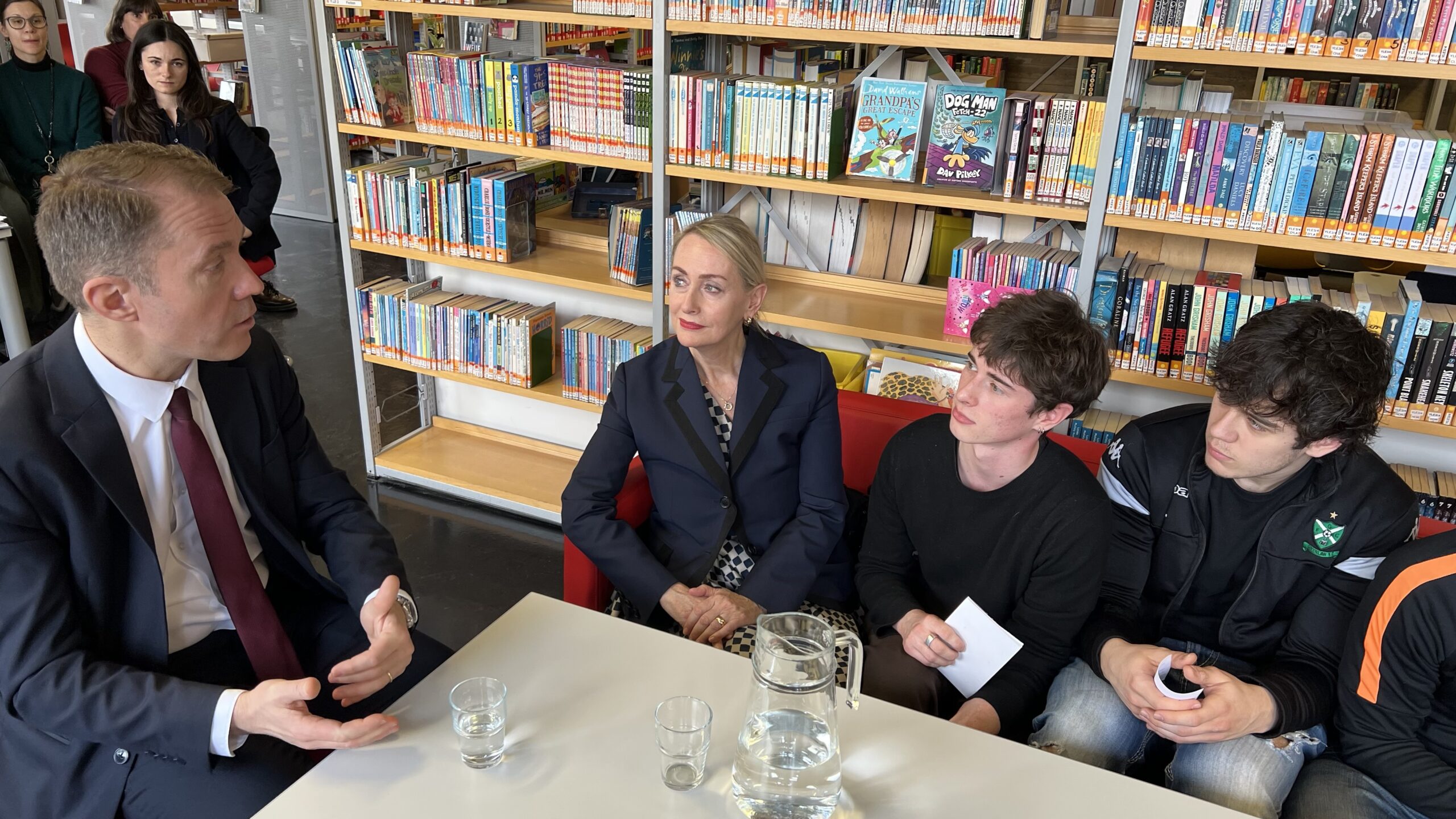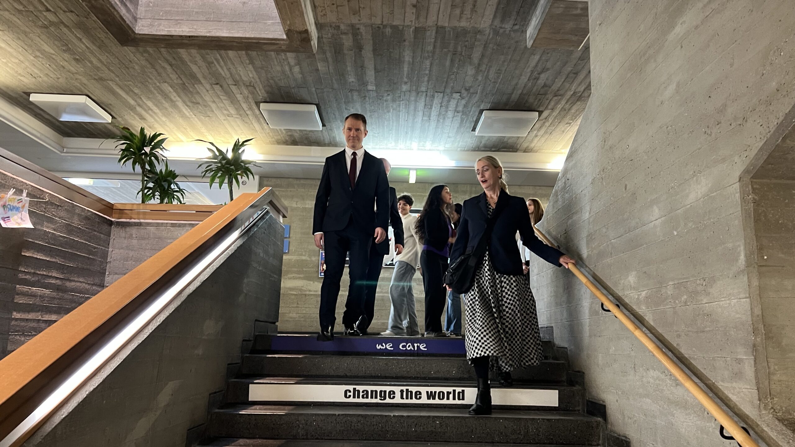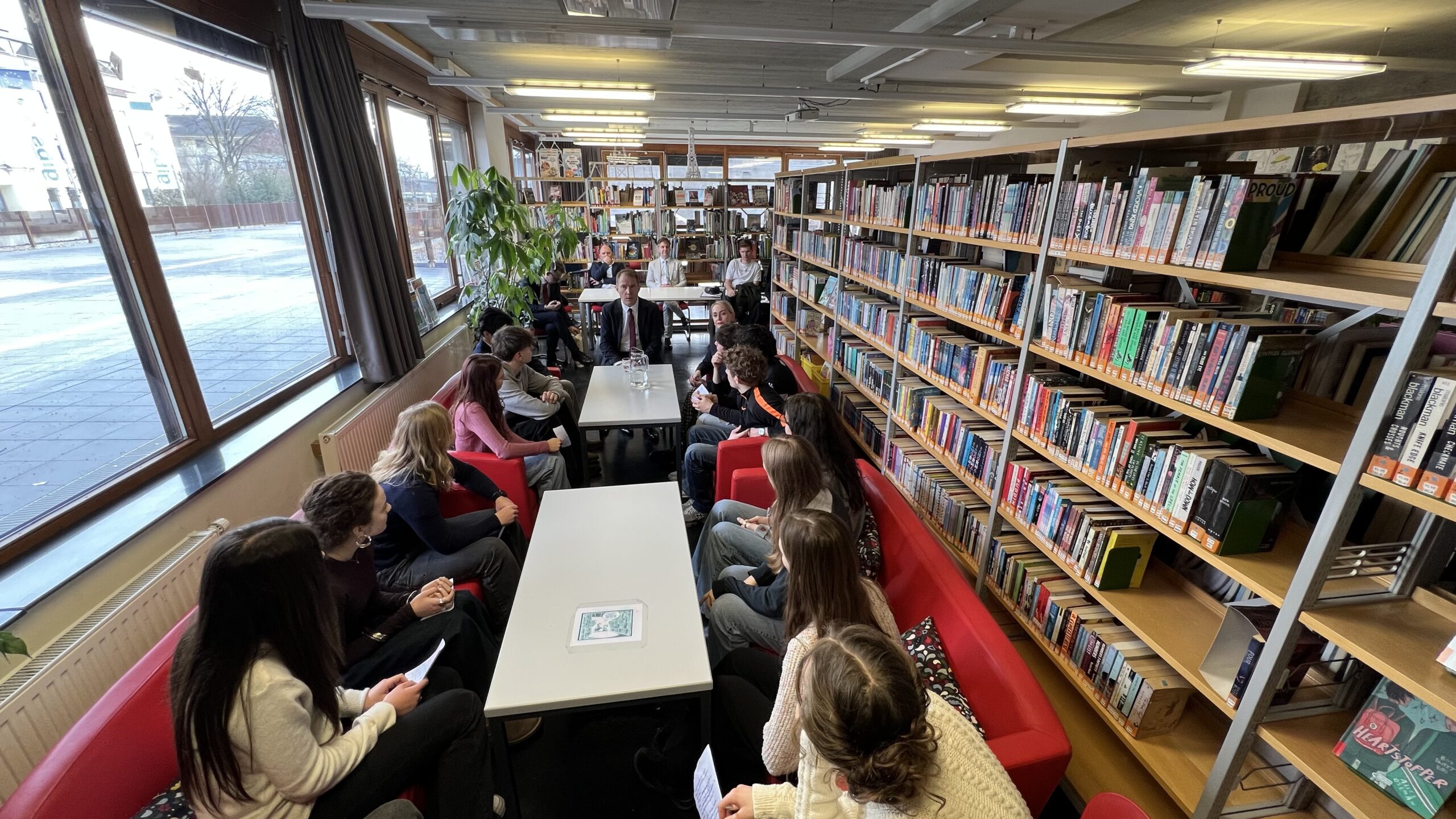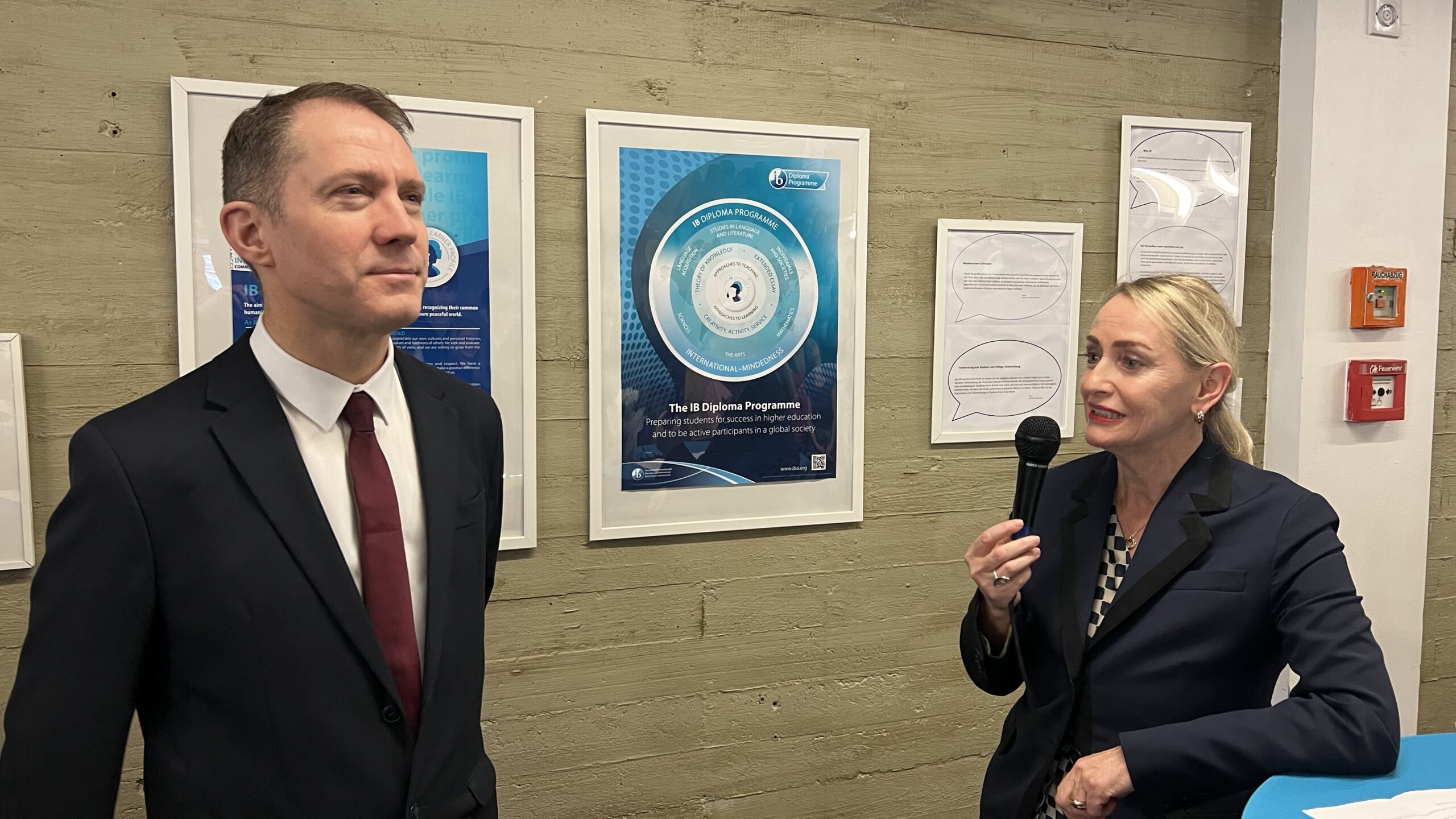 French students in years three and five, along with the junior choir and class 3C, performed the popular song “On Écrit Sur Les Murs” by Kids United for the French ambassador, Monsieur Peyraud, when he visited the school this past February. Later, during the welcome, Noah Schulte 4c performed the French composer Camille Saint-Saëns’s “Allegro Appassionato, Op. 43” on the cello, accompanied by the professional pianist Sakie Harada. After that, students Tilo Bendkis (3B), Olivia Platzgummer (3C), and Flora Karaka sang the classic “Les Feuilles Mortes,” accompanied by Lily Fink (7B) on clarinet.