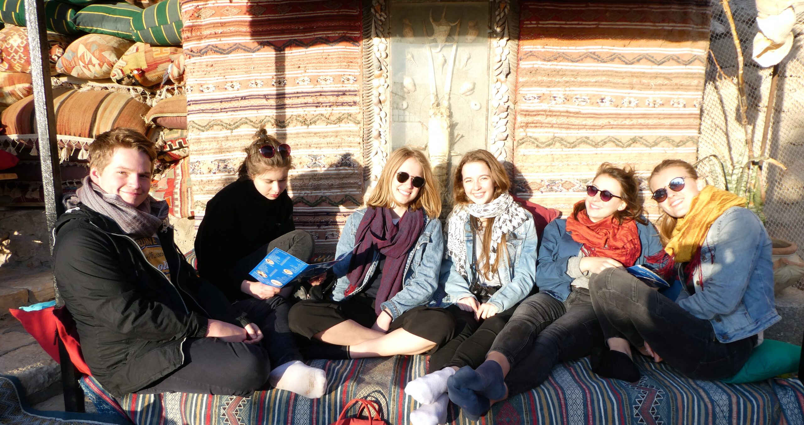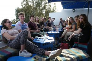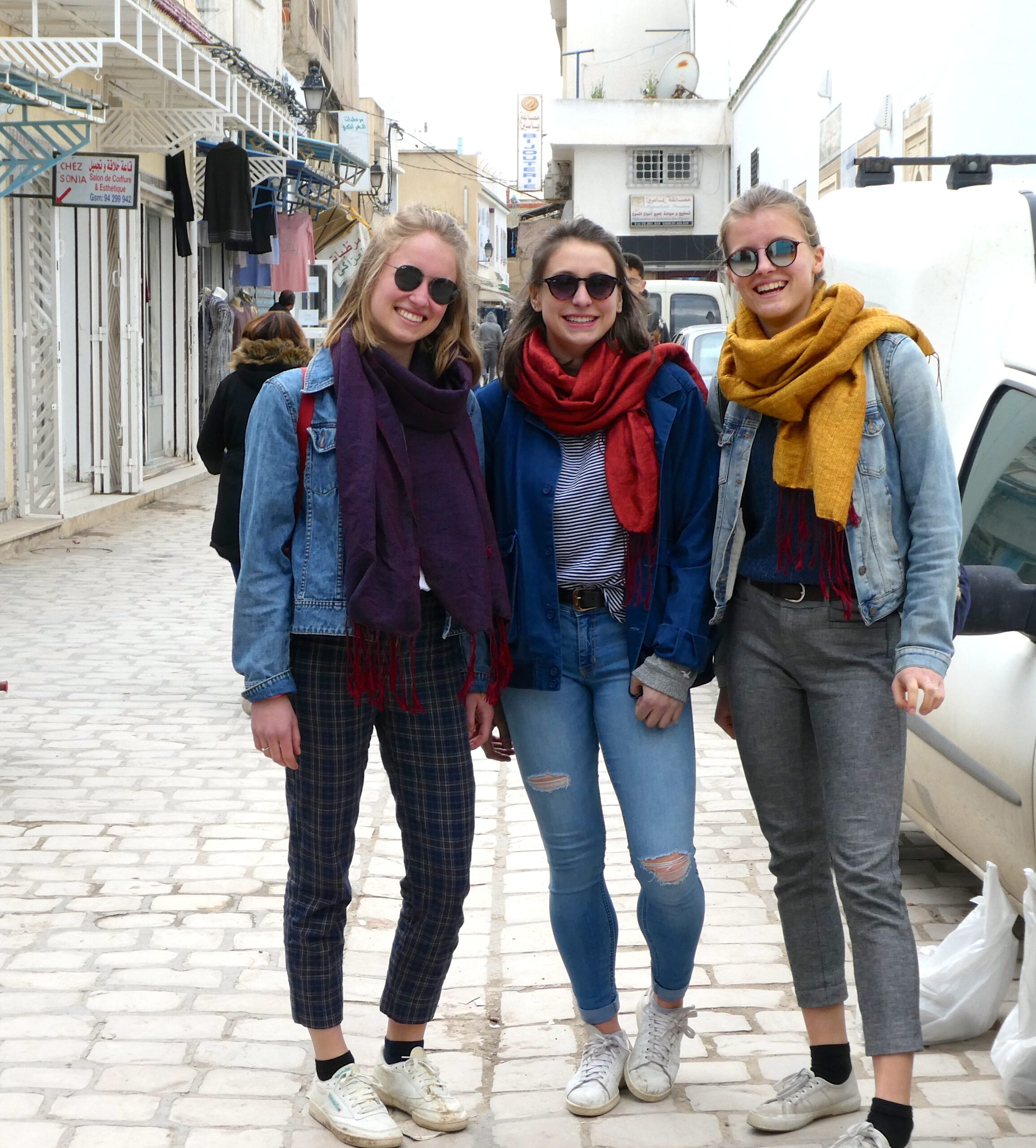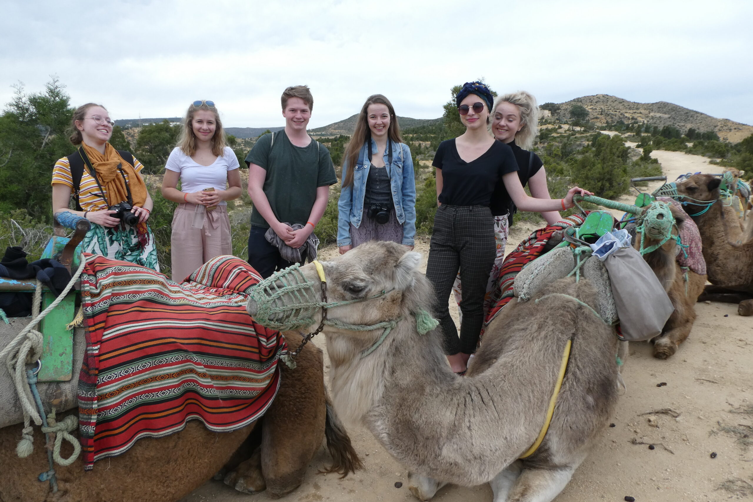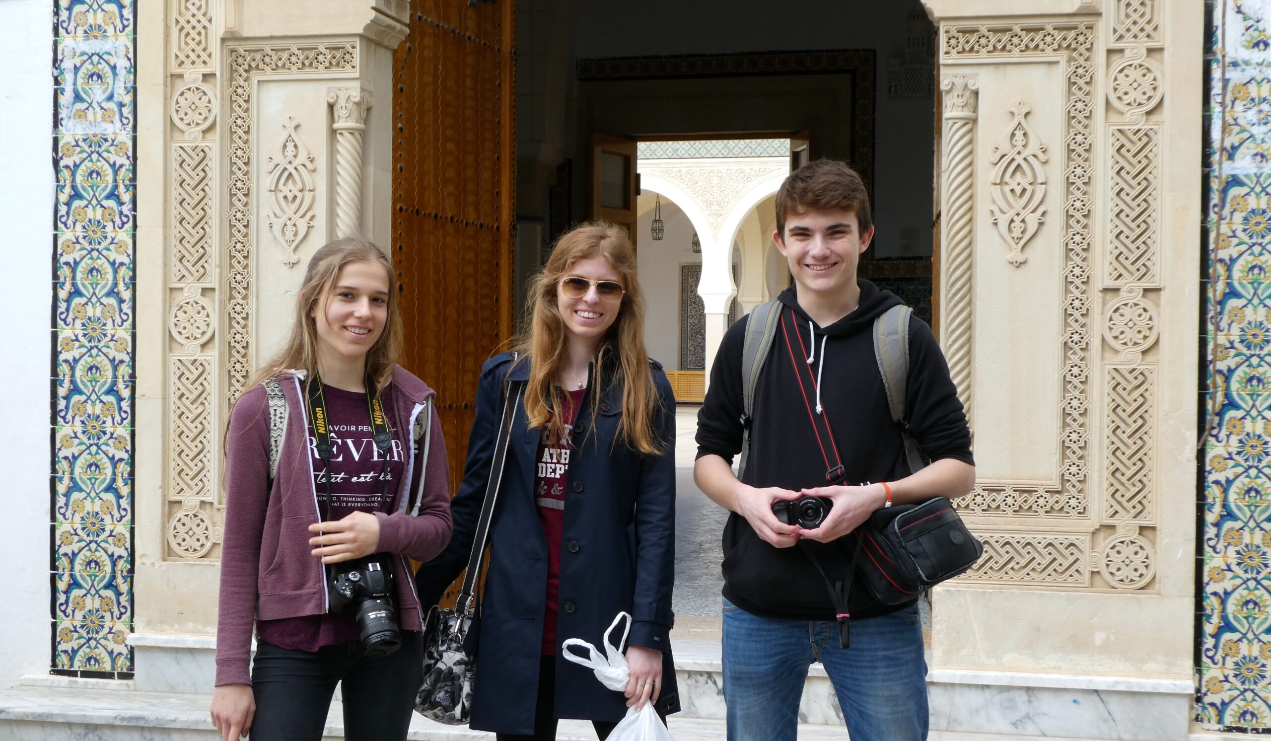 Maintenant quand je pense à la Tunisie, je pense non seulement aux épices, à la mer et aux palmiers, mais aussi à notre voyage inoubliable. Ce que je retiens de ce voyage, c’est avant tout la gentillesse de la plupart des Tunisiens, notamment de notre conducteur de bus très patient, de même que la culture et l’architecture impressionnante. Je n’oublierai jamais nos petites aventures dans le souk, à Hammamet et à la plage. Le lever de soleil en Tunisie était vraiment merveilleux. Nous nous sommes levés très tôt pour le voir et pour prendre des photos. En outre, nous avons eu la chance de faire la connaissance de l’éditeur KARIM BEN SMAIL, très connu au Maghreb, avec qui nous avons parlé de la politique actuelle et de l’histoire tunisienne. Par ailleurs, nous avons vu des ruines romaines à Carthage et nous avons fait une promenade à dos de chameau. À midi, nous avons toujours mangé dans des restaurants tunisiens et bien sûr la nourriture était délicieuse. À la fin de la semaine, il faisait chaud et nous avons nagé dans une mer d’un bleu immense. Je suis ravie d’avoir pu participer à ce voyage et j’espère être bientôt de retour en Tunisie.