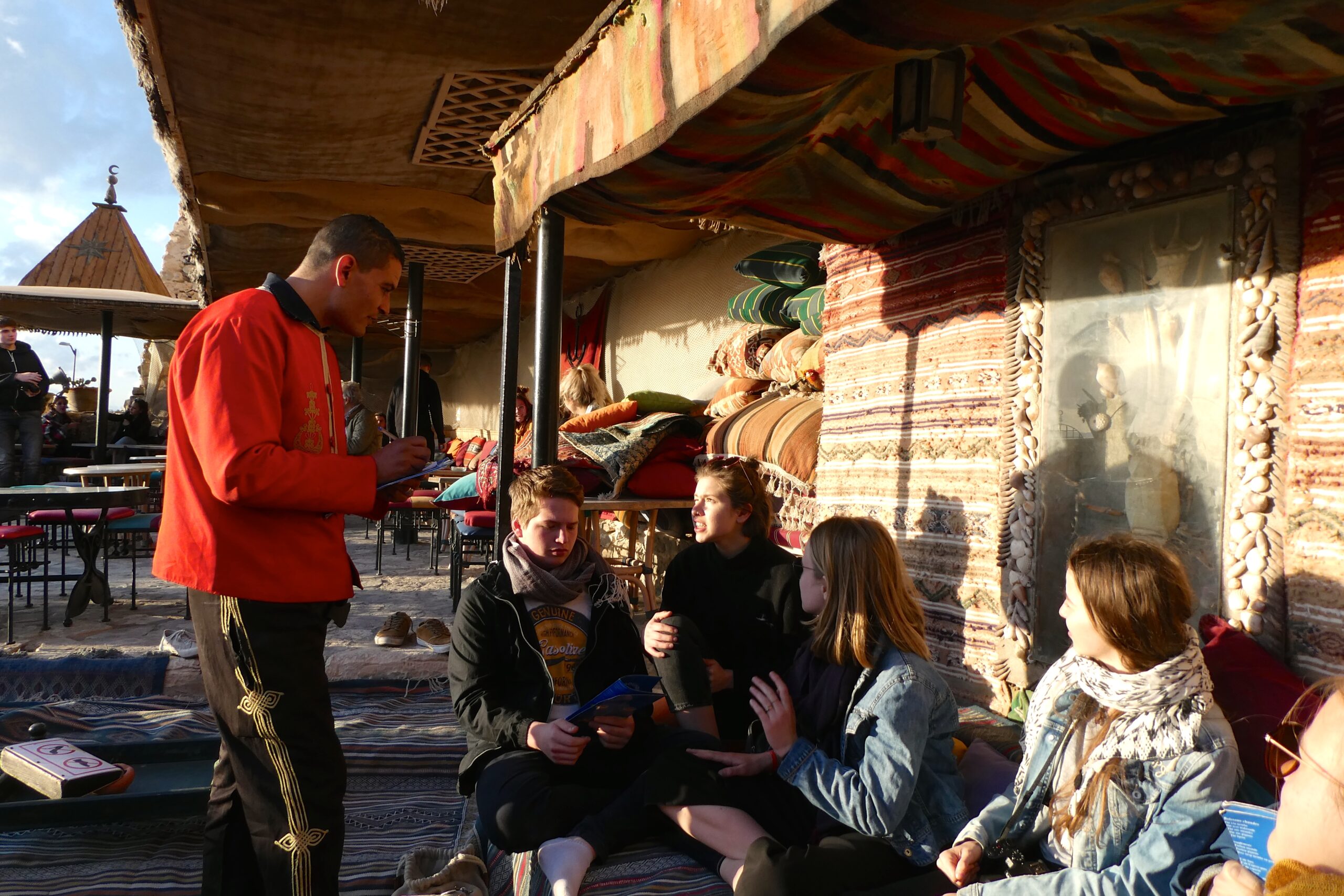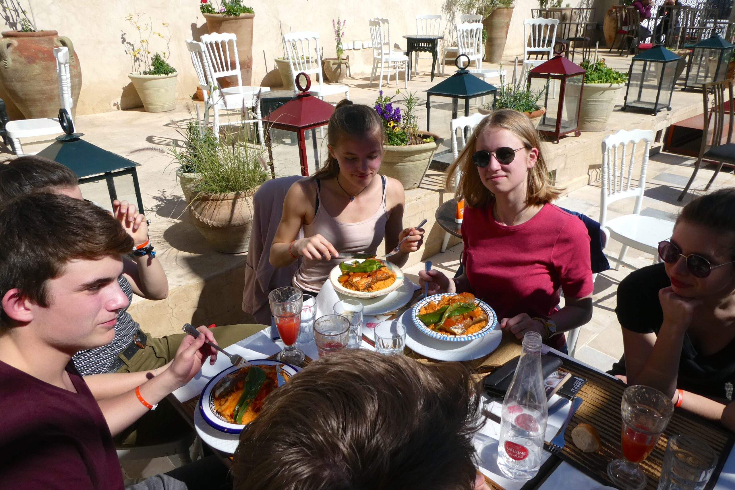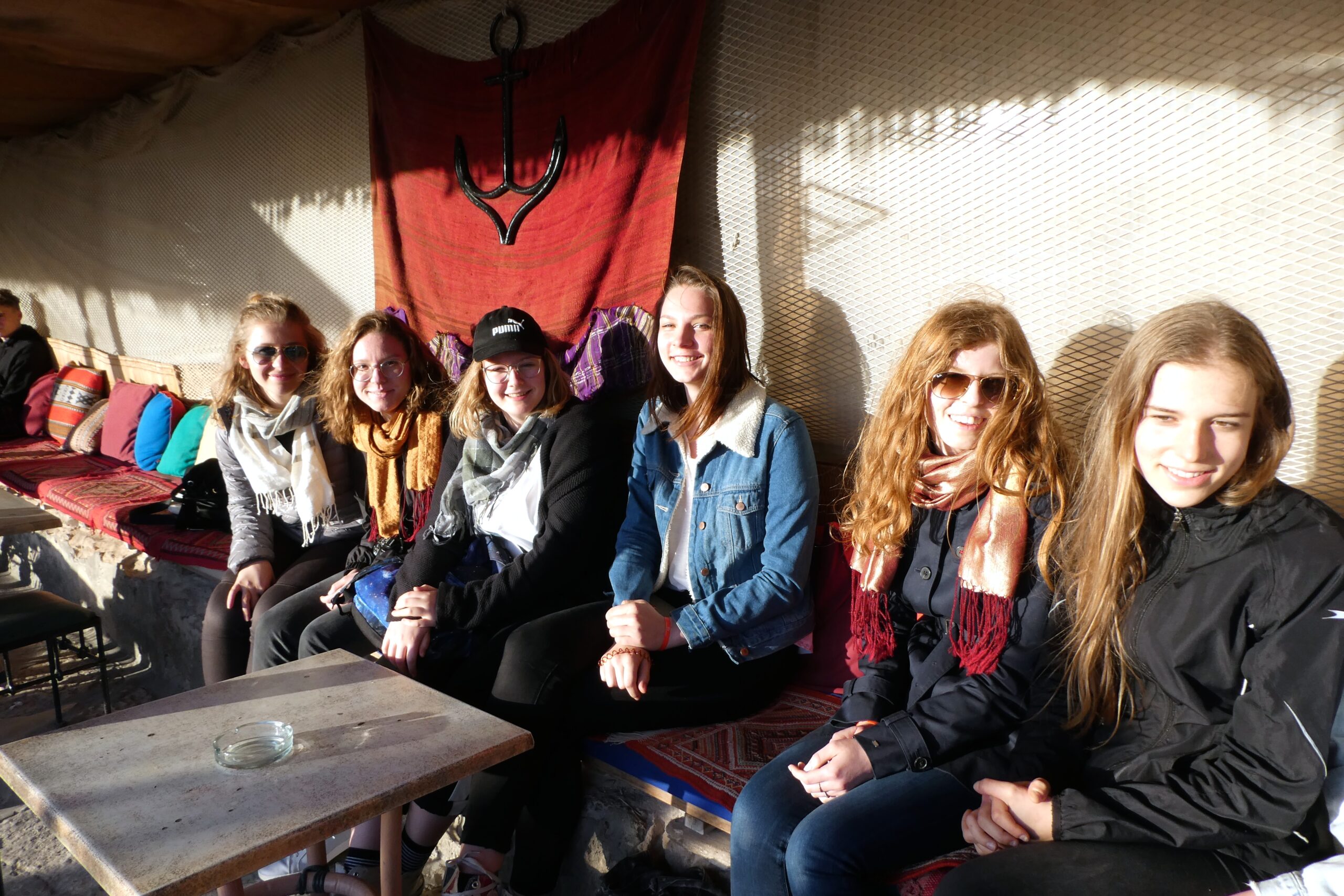 Von Ukulele-Sessions im Bus, über Kamelreiten und Jus d’orange im Souk bis hin zu Kartenspielen am Meer, es gab keine Sekunde Langweile. Endlich konnten wir die nach Orangenblüte duftende Luft Tunesiens schnuppern und Couscous bei über 20°C kosten. Manchmal sind wir in die eine oder andere Touristenfalle getappt, aber sonst konnten wir mit den Erfahrungen und dem Elan von Mme Radl das Land in all seinen wunderbaren Eigenheiten kennenlernen.